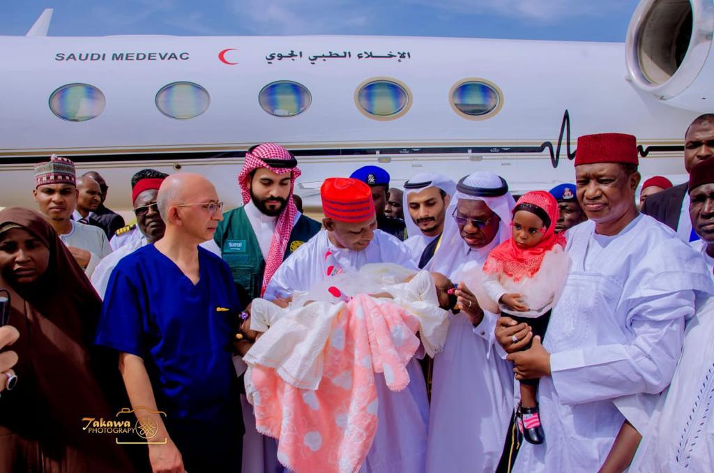 هذا وشارك في التوديع من الجانب النيجيري حاكم ولاية كانو المهندس آبا يوسف كبيرو ونائب حاكم الولاية المهندس أمينو عبدالسلام، كما أشاد حاكم الولاية بالمبادرة الإنسانية والأيادي البيضاء التي تقدمها حكومة المملكة العربية السعودية تحت قيادة خادم الحرمين الشريفين الملك سلمان بن عبد العزيز وولي عهده الأمين حفظهما الله، و شهدالتوديع حضور عدد من الطواقم الطبية إلى جانب سياسيين بارزين وإعلاميين. فيما أعرب والدي الطفلتين عن شكرهما وامتنانهما العميق للحكومة السعودية على هذه المبادرة الكريمة، سائلين الله أن يحفظ خادم الحرمين الشريفين وسمو ولي عهده الأمين والشعب السعودي وأن يديم عليهم الخير دائماً وأبداً.