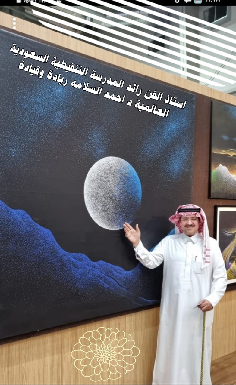 إنجاز ثقافي وميز وإبداع لصاحب المليار نقطة أحمد السلامة ولوحة نور القمر العالمية تمكن رائد ومؤسس المدرسة التنقيطية المدرسة النقيطية السعودية العالمية، والمستشار في الفنون الجميلة والتصاميم د أحمد السلامة من تنفيذ لوحة نور القمر . والتي أنجزها خلال تنفيذ عدد كبير من أعماله على مدار الأربعون عاما الحافلة بالإنجاز والعطاء والإبداع ؛ مما حدا لمشاهدة أعماله عن قرب بأن العمل الفريد هو نور القمر .