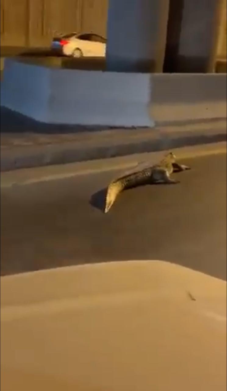 وتلقي المركز بلاغًا عن وجود التمساح في أحد الشوارع في محافظة القطيف بالمنطقة الشرقية، بعد تداول صور التمساح وهو يتجول بين السيارات في الشوارع،