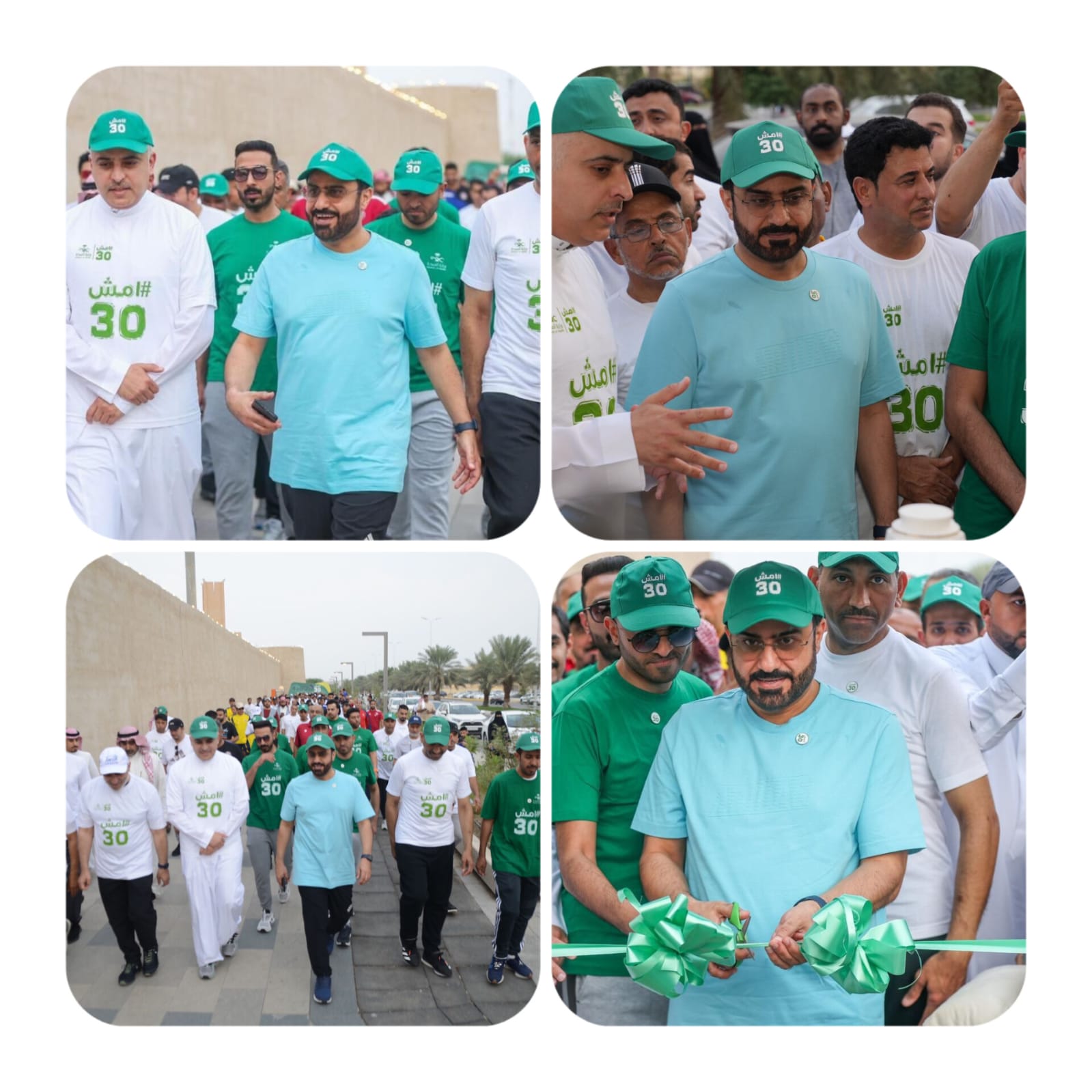 تحت رعاية صاحب السمو الملكي الأمير سعود بن طلال بن بدر محافظ الأحساء، دشن سعادة وكيل محافظة الاحساء الأستاذ معاذ بن إبراهيم الجعفري اليوم ” السبت ” مبادرة “امشِ 30” والتي تقيمها مديرية الشؤون الصحية بمحافظة الأحساء بالتعاون مع تجمع الأحساء الصحي ، والتي أطلقتها وزارة الصحة بالتزامن في كافة مناطق ومحافظات المملكة.