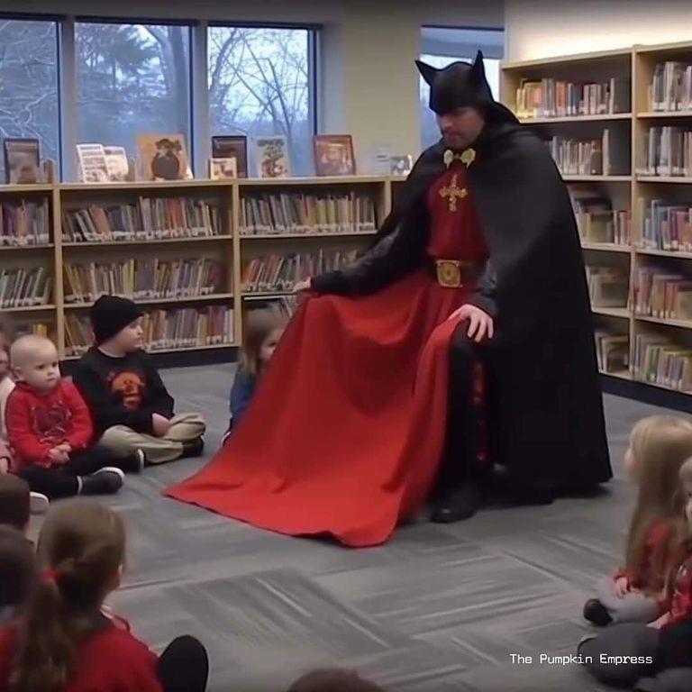 انتشرت على مواقع التواصل الاجتماعي مجموعة صور ادّعى ناشروها أنها لمكتبة كتبها ورموزها شيطانيّة، وزوّارها من الأطفال المتنكرين بأزياء عبدة الشيطان، إلا أنّ هذه الصور ليست حقيقيّة بل هي مولدة بواسطة برنامج ذكاء اصطناعيّ.