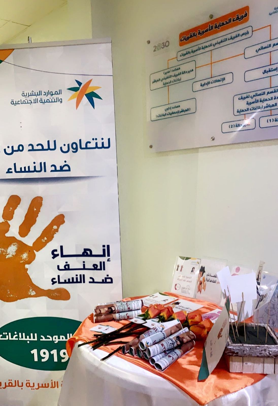 حيث اشتملت المبادرة على توعية المراجعين والمراجعات بضروره احترام المرأة وتقديرها ، وفي الختام تم توزيع بروشورات للتعريف بحقوقهن ونشر التوعية للقضاء على هذا العنف .