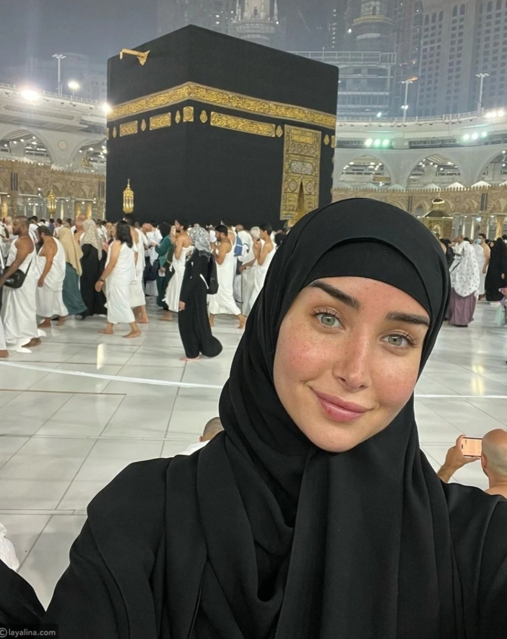 لفتت هنا الزاهد الأنظار بجمالها الهادئ حيث ظهرت الفنانة الشهيرة بدون مكياج، وارتدت حجاب باللون الأسود خلال أدائها لمناسك العمرة.