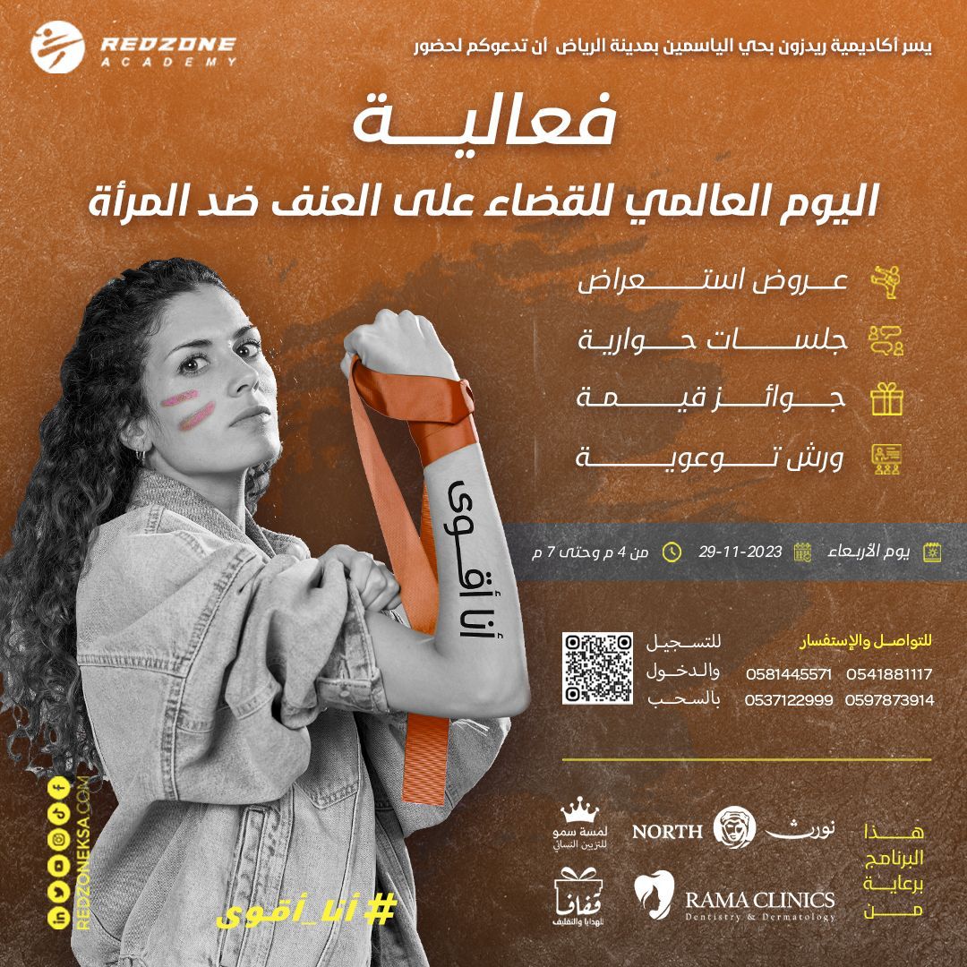 أقامت أكاديمية ريدزون للفنون القتالية للنساء والأطفال وهي أول أكاديمية نسائية للفنون القتالية بالمملكة العربية السعودية فعالية بمناسبة اليوم العالمي لمكافحة العنف ضد المراة حضرها العديد من النساء بمختلف الأعمار