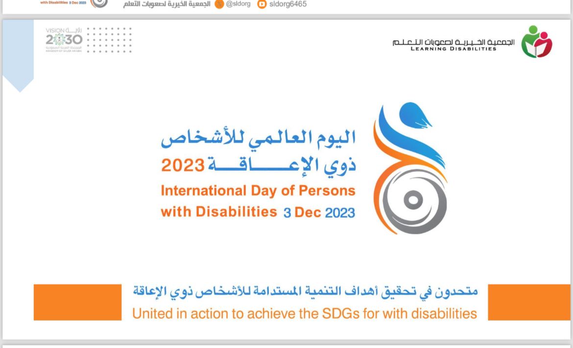 نظمت الجمعية الخيرية لصعوبات التعلم ندوة علمية ( متحدون لتنمية مستدامة لذوي الإعاقة ) بمناسبة اليوم العالمي للأشخاص ذوي الإعاقة ، وذلك مساء الأربعاء 6ديسمبر2023 (عن بعد) وبحضور عدد من المختصين والمهتمين شارك فيها عدد من المختصين تناولوا عدد من المحاور ، حيث تناولت في محور الخدمات الدكتورة أروى أخضر (انعكاسات التنمية المستدامة على تقدم وتطور ذوي الإعاقة) مشيرة إلى ضرورة تكاملية العمل لإحداث التغيرات المطلوبة ومؤكدة على ضرورة احتواء ذوي الإعاقة بما يحقق التنمية المستدامة ، وفي محور التشخيص أكد الدكتور محمد محجوب حول (التشخيص المناسب بوابة الخدمة المستدامة ) على أهمية التشخيص المبكر للحصول على نتائج أفضل مبيناً أن التشخيص يسهم في اتخاذ قرارات تربوية مناسبة ، فيما أوضحت الدكتورة هند المطيري في محور التكامل بعنوان ( التعاون بين معلم التعليم العام ومعلم التربية الخاصة في مدارس الدمج ) مبينة أن التعاون له عدة أوجه بين المعلمين وأن إيجابياته كبيرة تنعكس على المعلمين والطلاب والأهل ، واختتمت الندوة العلمية بعدة توصيات منها: