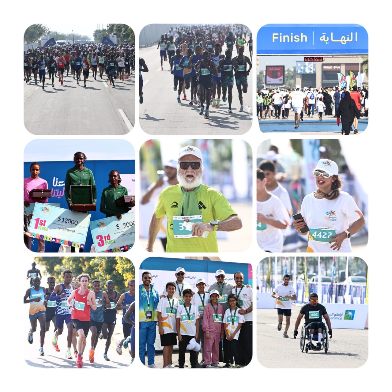 أكثر من (6) الاف متسابق ومتسابقة شاركوا بفعالية كبيرة في سباق الجري الخيري السنوي الـ (25)، وأضفوا بحماسهم ومثاليتهم الكثير من الإثارة على أجواء السباق، فقد توج في السباق المفتوح المتسابق الجنسية «أثيوبيا » بدرع المركز الأول ومبلغ ( ١٢٠٠ ) دولار ( Biniam Mehary )