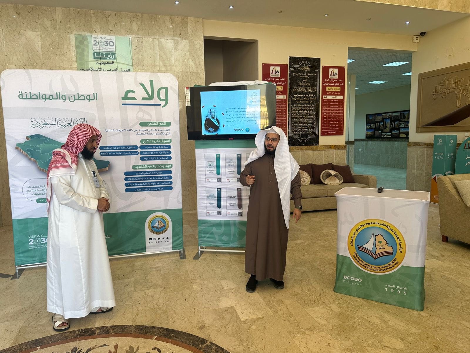 وقد استمع سعادته لشرحٍ مفصل من مدير عام الفرع الشيخ أحمد عبدلي عن مضامين معرض (ولاء) الخاص بالأمن الفكري والذي أعدته الرئاسة العامة لهيئة الأمر بالمعروف والنهي عن المنكر ،حيث يهدف إلى نشر الوعي والتحذير من الغلوّ، وتعزيز قيم الوسطية والاعتدال، وتوضيح أهمية الأمن الفكري وكيفية تحقيقه بأساليب حديثة .