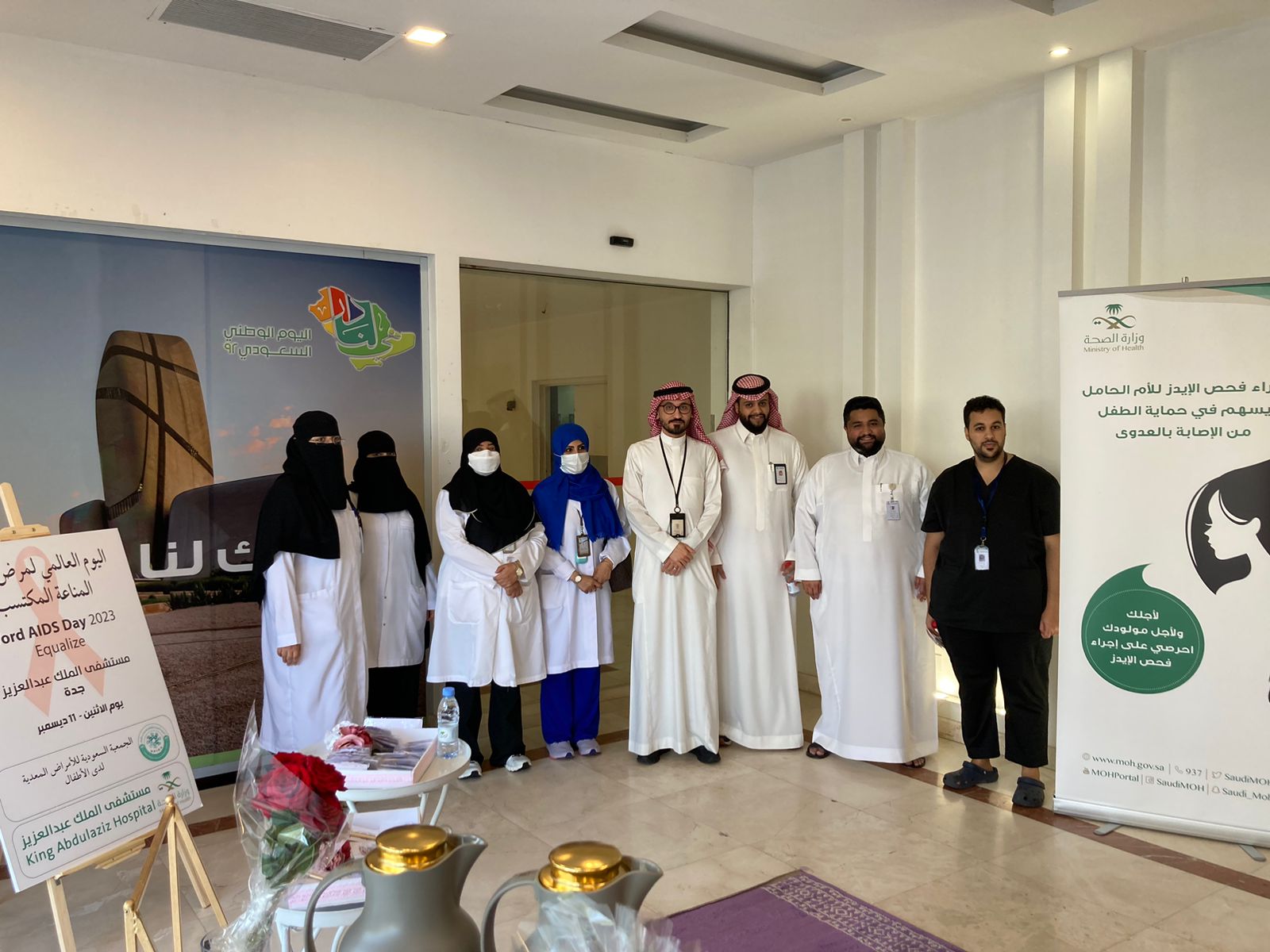 تزامنا” مع يوم التوعية العالمي لمكافحة الايدز فعلت الجمعية السعودية للأمراض المعدية لدى الأطفال بالتعاون مع قسم الأطفال بمستشفى الملك عبدالعزيز بجدة بإقامة محاضرة عن ضرورة إجراء فحص الإيدز للأم الحامل لما له من الأثر الكبير في حماية الطفل وسلامته من الإصابة، كما ضمت الفعالية أركان توعوية بالتعاون مع قسم التثقيف والتوعية الصحية وقسم مكافحة العدوي لنشر الوعي بين منسوبي المستشفى والمراجعين بالتعريف عن مرض الايدز وطرق إنتقاله والوقاية منه لتقليل إحتمالية الإصابة بالمرض هذا وقد نالت الفعالية إستحسانًا كبيرا من الجميع.