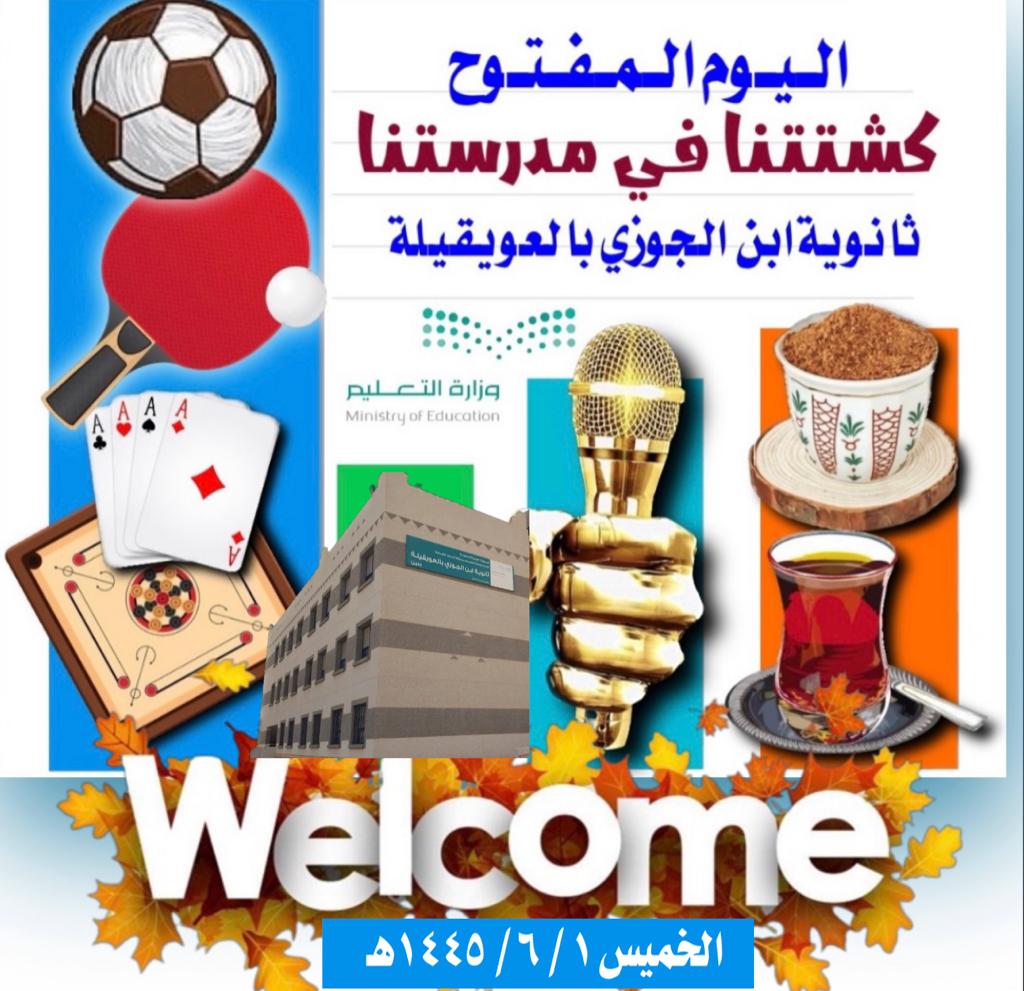 أقامت ثانوية ابن الجوزي بالعويقيلة التابعة لمكتب التعليم بمحافظة العويقيلة بمنطقة الحدود الشمالية هذا اليوم الخميس بحضور مدير المدرسة والهيئة الإدارية والمعلمين والطلاب فعالية اليوم المفتوح (كشتتنا في مدرستنا ).