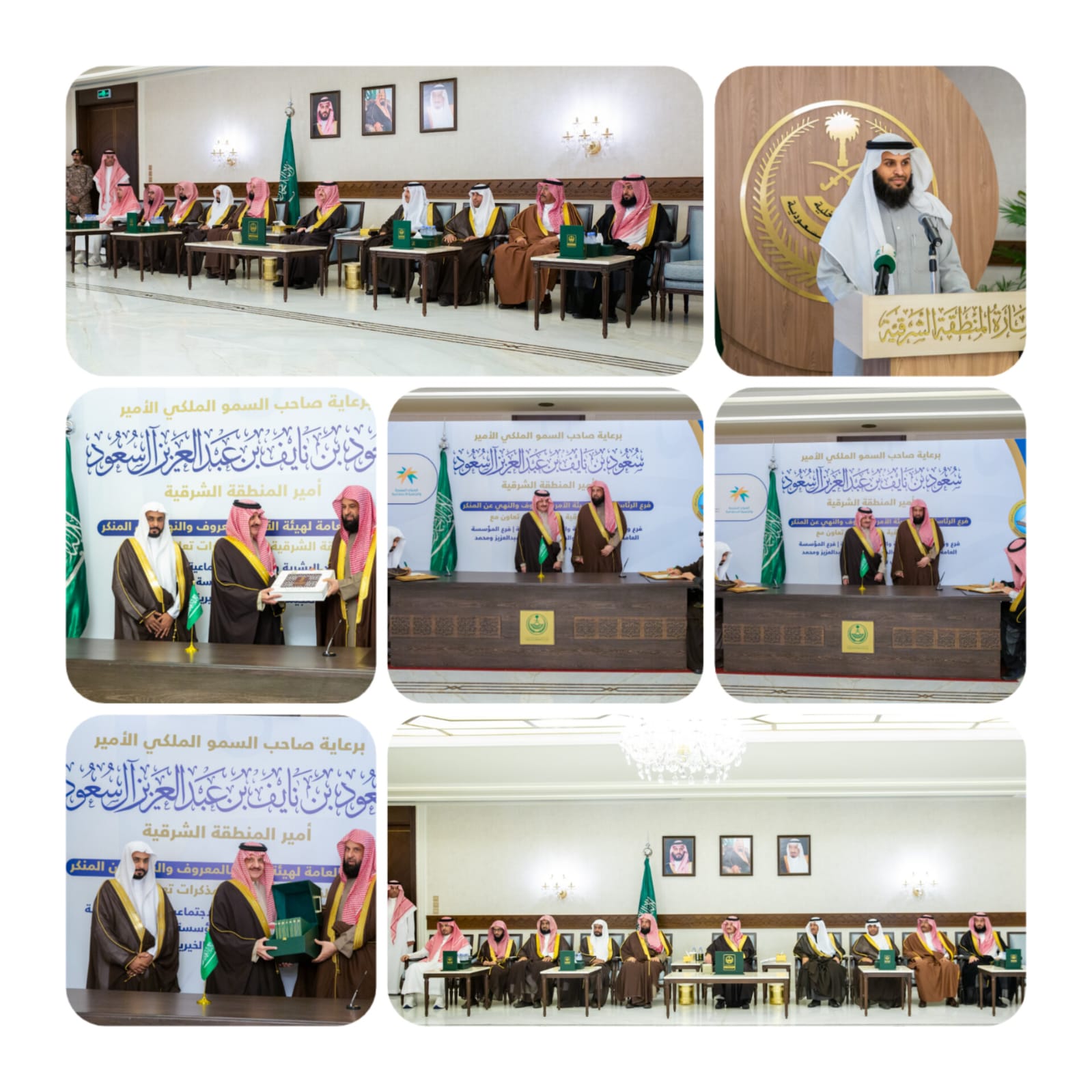 رعى صاحب السمو الملكي الأمير سعود بن نايف بن عبدالعزيز أمير المنطقة الشرقية بديوان الإمارة اليوم الاثنين ، وبحضور معالي الرئيس العام لهيئة الأمر بالمعروف والنهي عن المنكر الشيخ الدكتور عبدالرحمن بن عبدالله السند،‏‎ توقيع فرع الرئاسة العامة لهيئة الأمر بالمعروف والنهي عن المنكر بالمنطقة الشرقية، ثلاث مذكرات تعاون مع فرع وزارة الموارد البشرية والتنمية الاجتماعية بالمنطقة الشرقية، وفرع المؤسسة العامة للتدريب التقني والمهني بالمنطقة، ومؤسسة عبدالعزيز و محمد العجيمي وعائلتهما الخيرية.