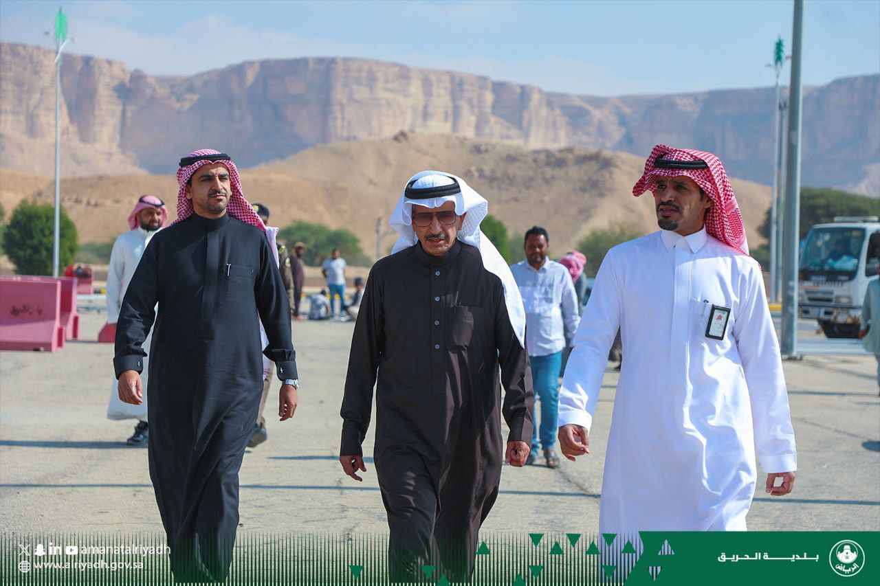 محافظ الحريق في زيارة تفقدية صباح اليوم الاثنين ٥ جمادى الآخرة ١٤٤٥ هـ لموقع مهرجان الحمضيات الثامن بالحريق؛ وبرفقته رؤساء بعض الجهات الحكومية بالمحافظة.