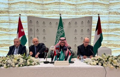 كما اثنى المشاركون على جهود المملكة من خلال ترأسها للجنة الوزارية المكلفة من القمة العربية الإسلامية المشتركة غير العادية ممثلاً ذلك بسمو وزير الخارجية الأمير فيصل بن فرحان بن عبدالله، والتي تضم في عضويتها نائب رئيس الوزراء الأردني- وزير الخارجية أيمن الصفدي، في تكثيف التواصل مع المجتمع الدولي للضغط باتجاه الوقف الفوري للتصعيد العسكري، وحماية المدنيين، وتمكين إيصال المساعدات الإغاثية والمعدات الطبية، وإيجاد حلٍ عادل وشامل ومنصف يلبي تطلعات الشعب الفلسطيني.