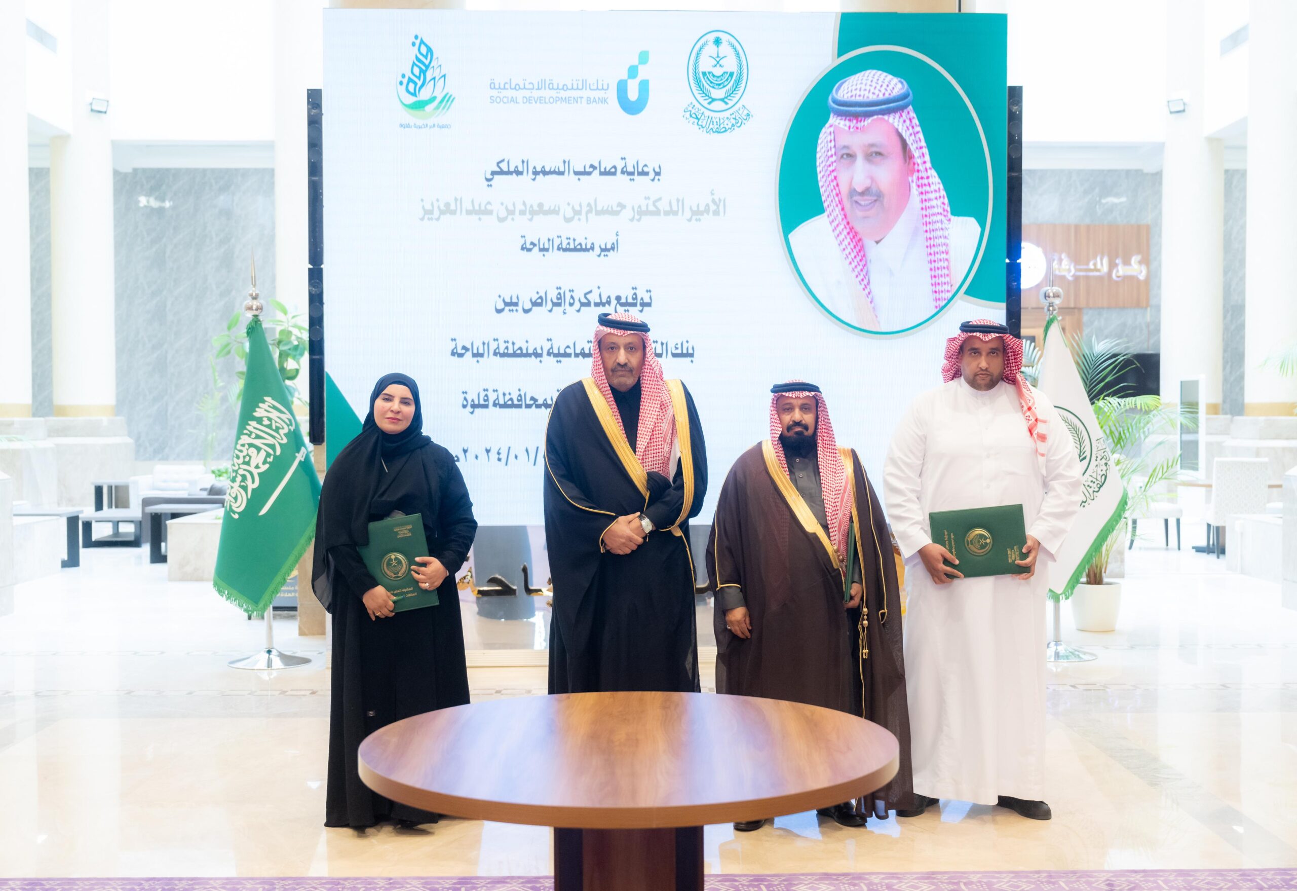 رعى صاحب السمو الملكي الأمير الدكتور حسام بن سعود بن عبدالعزير آل سعود أمير منطقة الباحة بديوان الإمارة اليوم ، عدد من الإتفاقيات التمويلية بين بنك التنمية الاجتماعية بالباحة وجمعية البر الخيرية بمحافظة قلوة، وجمعية التنمية الأهلية ببني كبير.