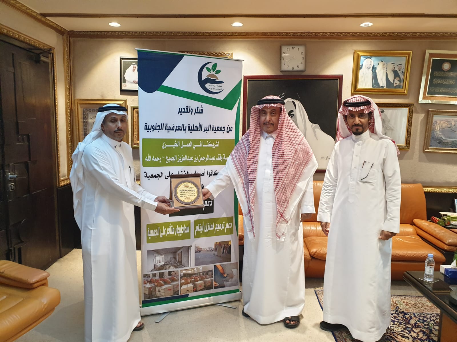 هذا وتم خلال الزيارة تسليم درع تذكاري وبنر ( رول آب ) بأعمال الجمعية علما” بأن هذا التبرع هو التبرع الثاني للشيخ عبدالله الجميح وسبق أن تبرع لترميم مباني متنوعة بالعرضية الجنوبية وكذلك دعمه بمنح سلال غذائية وكذلك دعمه للأرامل والأيتام والمطلقات…