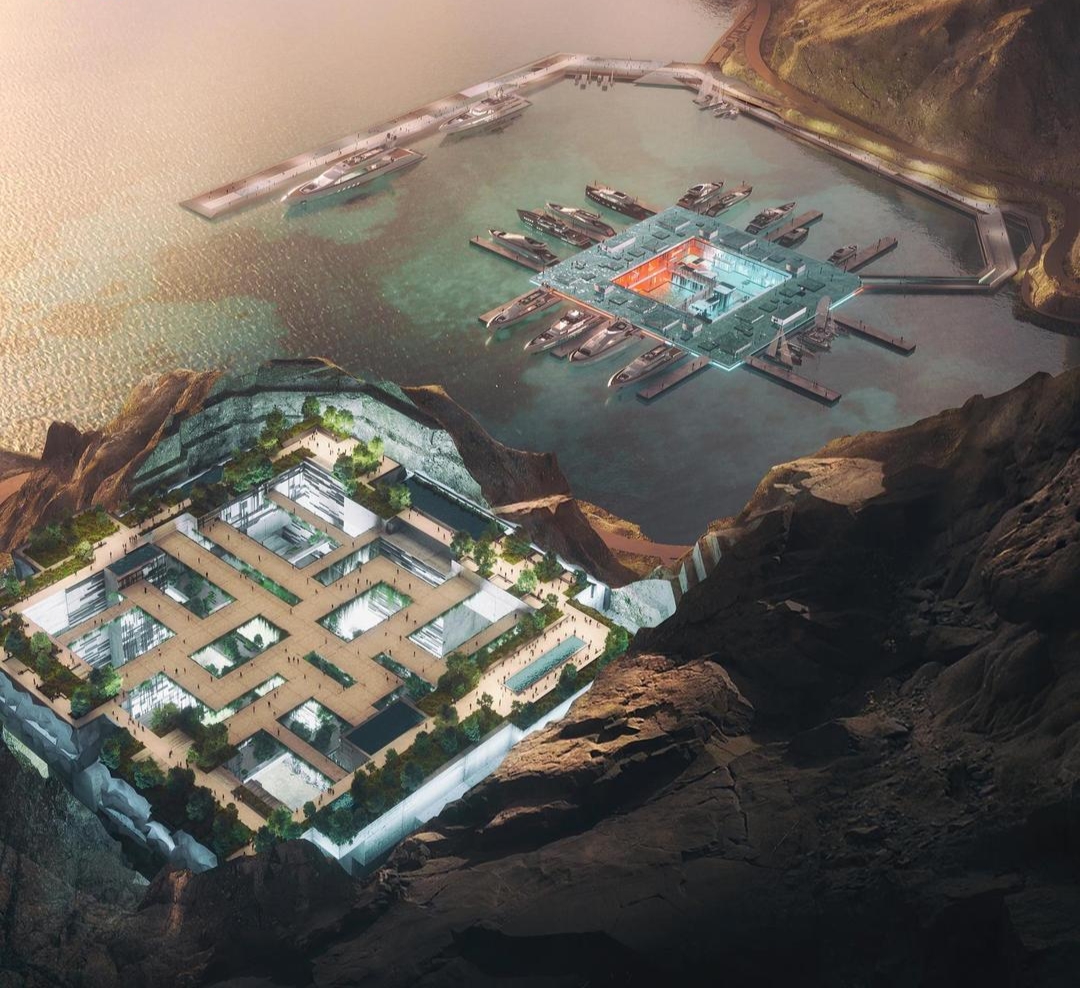 وتقع “أكويلم” على ساحل خليج العقبة، داخل سلسلة جبال خلابة تحيط بها، ويبلغ ارتفاعها 450 متراً، وتمثل الوجهة منظومة للمعيشة تتكامل مع البيئة الطبيعية المحيطة؛ حيث صُممت لدفع الابتكار في التصميم والبناء المستوحى من الأصالة والخيال العلمي، بعيداً عن الأساليب التقليدية.