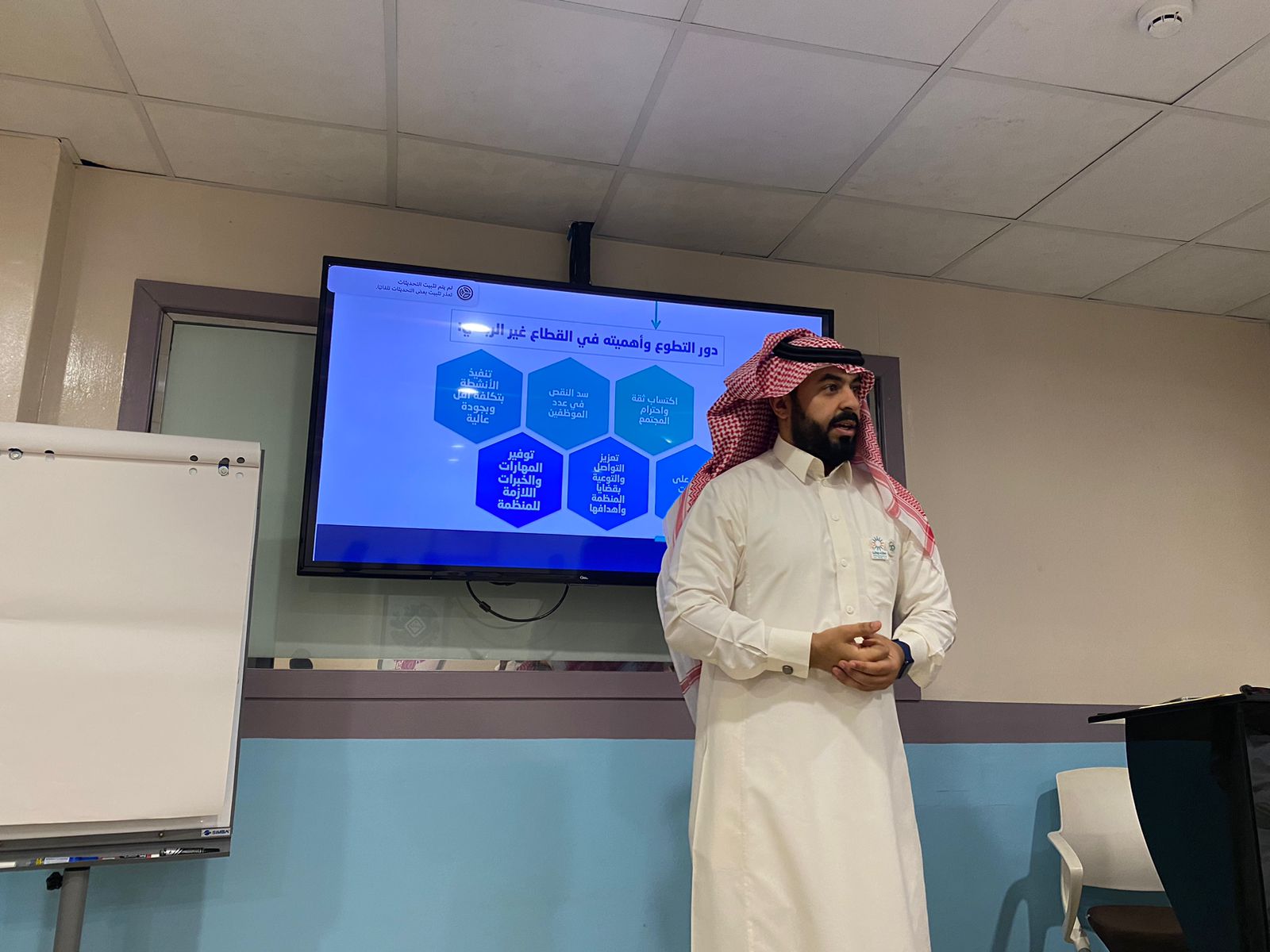 قدّم سعادة الأستاذ مفرح بن محمد عسيري ورشة (تصميم الفرص التطوعية ضمن البرنامج التأهيلي لبناء قدرات قادات العمل التطوعي بالمركز الوطني لتنمية القطاع الغير الربحي ) لأعضاء مراكز الأحياء والقادة الفرق التطوعية التابعين لجمعية مراكز الأحياء فرع العاصمة المقدسة.