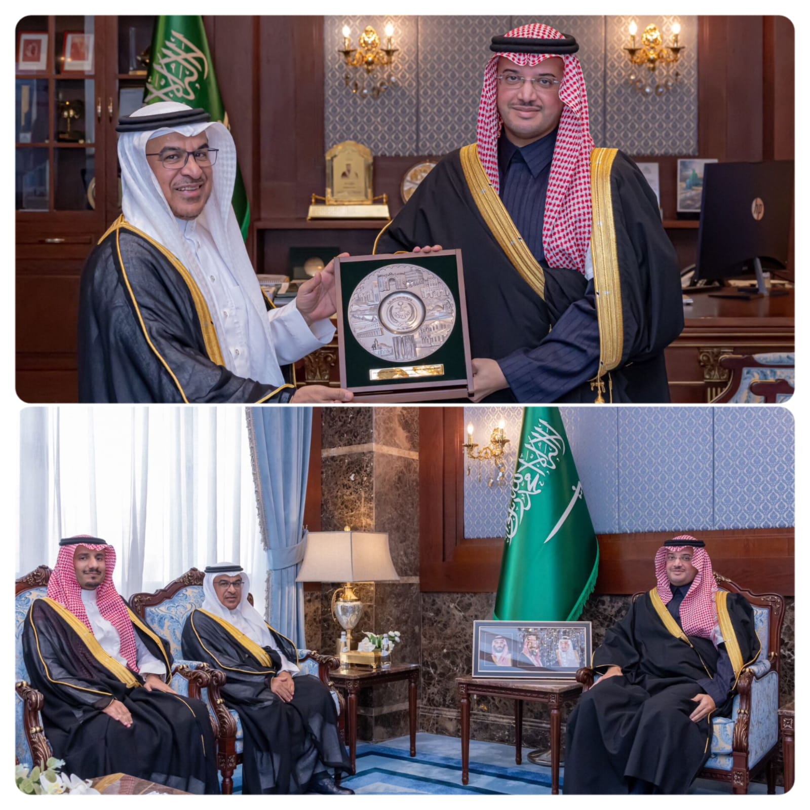 استقبل صاحب السمو الملكي الأمير سعود بن طلال بن بدر محافظ الأحساء بمكتب سموّه بمقر المحافظة اليوم ” الثلاثاء “، الرئيس السابق للمؤسسة العامة للري الدكتور فؤاد ال الشيخ مبارك المعين حديثًا رئيسًا تنفيذيًا لشركة المياه الوطنية، و المهندس محمد بن زيد أبوحيد المكلف حديثًا برئاسة المؤسسة.