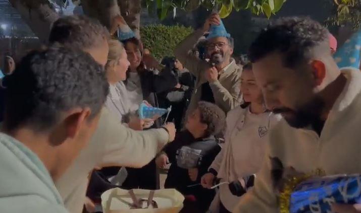 احتفل الفنان خالد النبوي بعيد ميلاد منى احمد زاهر وادم وهدان اللذان يشاركان في مسلسله الرمضاني “إمبراطورية ميم”، وذلك أثناء التصوير بحضور مخرج العمل محمد سلامة وبطلته حلا شيحة وشقيقتها هنا شيحة التي كانت تزورها في التصوير لتهنئتها ببدء التصوير.