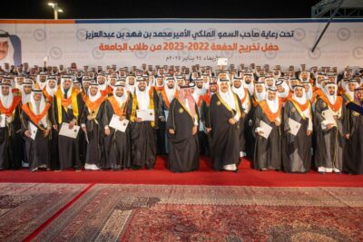 تحت رعایة صاحب السمو الملكي الأمیر محمد بن فھد بن عبد العزیز رئیس مجلس أمناء الجامعة احتفلت جامعة الأمیر محمد بن فھد بتخریج الدفعة ٢٠٢٢- ٢٠٢٣ من طلابھا البالغ عددھم ٤٥٠ طالبا في مختلف التخصصات، وذلك مساء يوم الأربعاء ٢٤ ینایر ٢٠٢٤م بمقر الجامعة بمدینة الخبر.وھنئ سمو راعي الحفل الطلاب الخریجین وأولیاء أمورھم على ھذا الانجاز العلمي متمنیاً لھم التوفیق والنجاح في خدمة دینھم ثم ملیكھم ووطنھم.