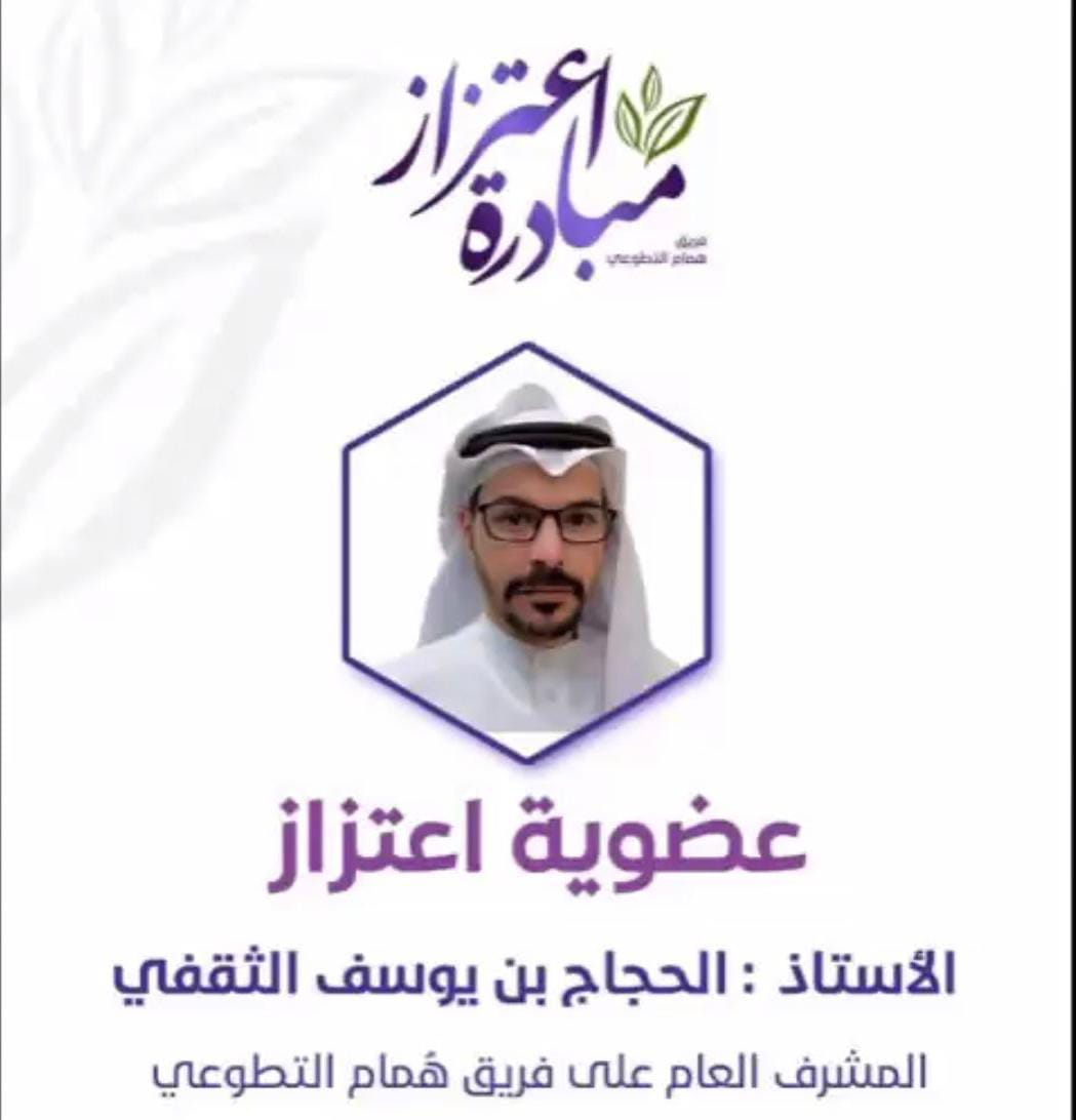 باختصار ، فإن الأستاذ : الحجاج بن يوسف الثقفي هو قدوة حقيقية للتطوع والعطاء ، حيث إنهُ يجمع بين العمل الخيري المستمر ورؤيته الإيجابية لتحسين المجتمع والحفاظ على العمل الجماعي .