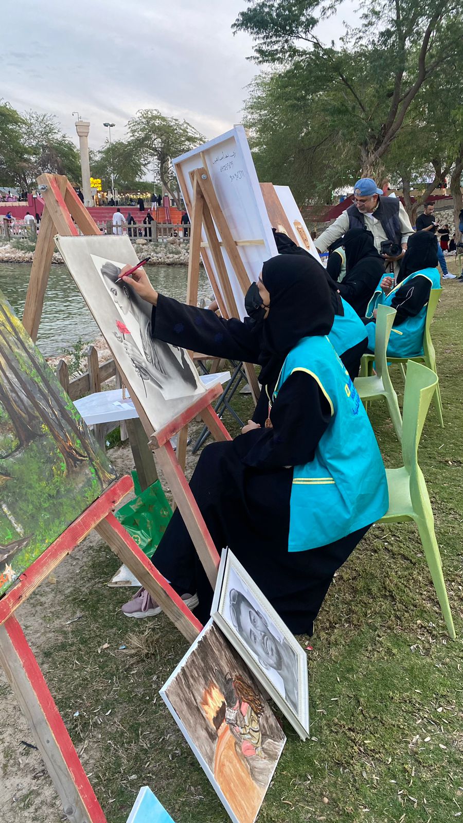 ومن المبادرات الجميلة هي الرسم الحر بمدينة جواثا السياحية حيث استقبلت أكثر من ٦٠ مشارك بمجال الرسم المباشر والخط العربي والمعرض الفني المتنوع والاركان الفنية المتنوعة منها ركن الكورشية والرسم على الوجهه وركن النحت والخشب وركن الريزن والرسم على الأكواب وركن الحناء للأطفال