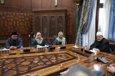 استقبل فضيلة الإمام الأكبر أ.د أحمد الطيب، شيخ الأزهر الشريف، اليوم الاثنين بمشيخة الأزهر، السيدة أليسة قطر الندى واحد، ابنة الرئيس الإندونيسي الأسبق، والدكتور نور أحمد، رئيس الهيئة الوطنية للزكاة الإندونيسية.
