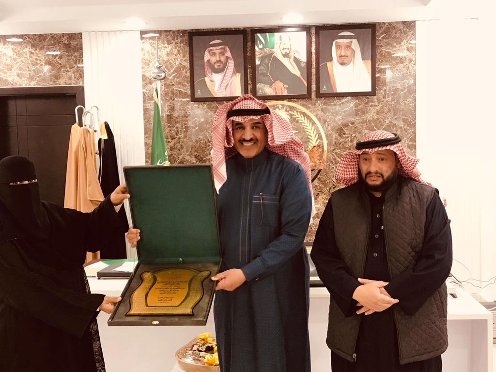 أستقبل سعادة محافظ طريف الاستاذ بدر بن نجر الصقر في مكتبه بمقر المحافظة وسط طريف ادارة معهد المسار للتدريب بالمحافظة ممثله برئيس مجلس الادارة الاستاذ فايز الغشم والمستشارة فاتن المحيسن ومديرة فرع طريف الاستاذة شيخه عوض الغشم والمدربات اثير محمد الأشجعي واسماء مرجي الرويلي وايمان طه والطالبة ابتهال غياض الرويلي