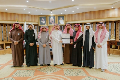 وحضر التسليم وكيل الجامعة للدراسات العليا والبحث العلمي الدكتور محمد الشارخ، وعميد كلية اللغة العربية والدراسات الاجتماعية الدكتور إبراهيم اللاحم، وعميد عمادة الدراسات العليا الدكتور علي اللاحم، ورئيس قسم اللغة العربية الدكتور صالح الصعب.