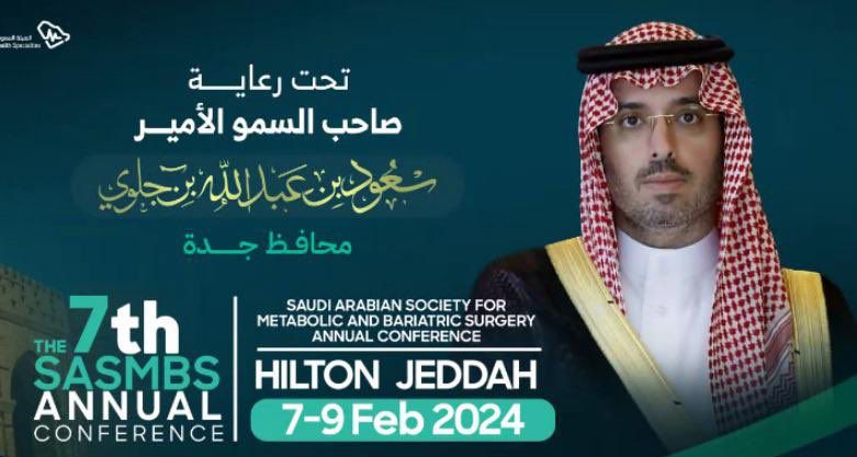 تحت رعاية صاحب السمو الأمير سعود بن عبدالله بن جلوي محافظ جدة، تنظم الجمعية السعودية لطب وجراحة السمنة مؤتمرها الدولي السابع خلال الفترة من 7 – 9 فبراير الجاري، في قاعة المؤتمرات بفندق هيلتون جدة.