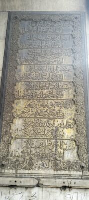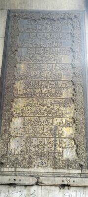 يتكون من مدخل في أقصي الركن الشمالي الغربي وبه كُتاب أعلي السبيل وواجهة السبيل مقوسة إلي الخارج وبها أربعة شبابيك ذات عقود ثلاثية يعلو كل شباك إطار من الكتابات القرآنية ويوجد بالجزء الشمالي والجنوبي لواجهة السبيل اطاران يحويان كتابات باللغة التركية والعربية داخل مستطيل مقسم إلي ثماني مناطق أفقية ويحدد المتسطيل زخارف نباتية وهندسية وتاريخ الإنشاء مكتوب بالضلع السفلي، حيث يوجد نص التأسيس باللغة العربية بالجزء الشمالي لواجهة السبيل وهو بالخط الثلث ونصه–ونص التأسيس باللغة التركية بالجزء الجنوبي وهو مماثل تماما للنص العربي.