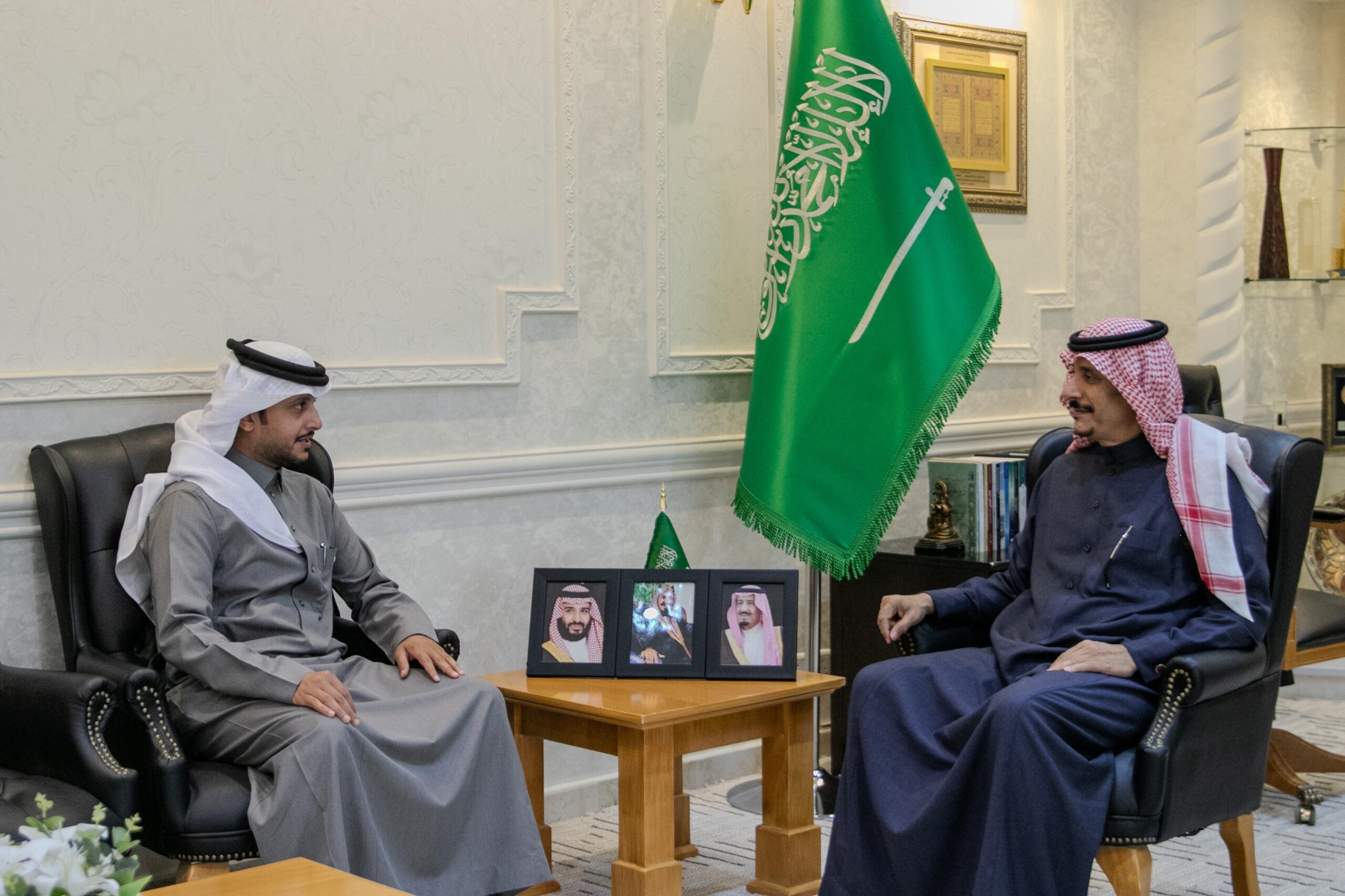 اﺳﺘﻘﺒﻞ ﺻﺎﺣﺐ اﻟﺴﻤﻮ اﻷﻣﯿﺮ ﻋﺒﺪاﻟﺮﺣﻤﻦ ﺑﻦ ﻋﺒﺪﷲ ﺑﻦ ﻓﯿﺼﻞ ﻣﺤﺎﻓﻆ ﺣﻔﺮ اﻟﺒﺎطﻦ ﺻﺒﺎح اﻟﯿﻮم اأﺣﺪ ﻣﺪﯾﺮ ﺑﻨﻚ اﻟﺘﻨﻤﯿﺔ اﻻﺟﺘﻤﺎﻋﯿﺔ ﺑﻤﺤﺎﻓﻈﺔ ﺣﻔﺮاﻟﺒﺎطﻦ ﻓﯿﺤﺎن ﺑﻦ ﻋﺒﺪﷲ اﻟﺤﺮﺑﻲ.