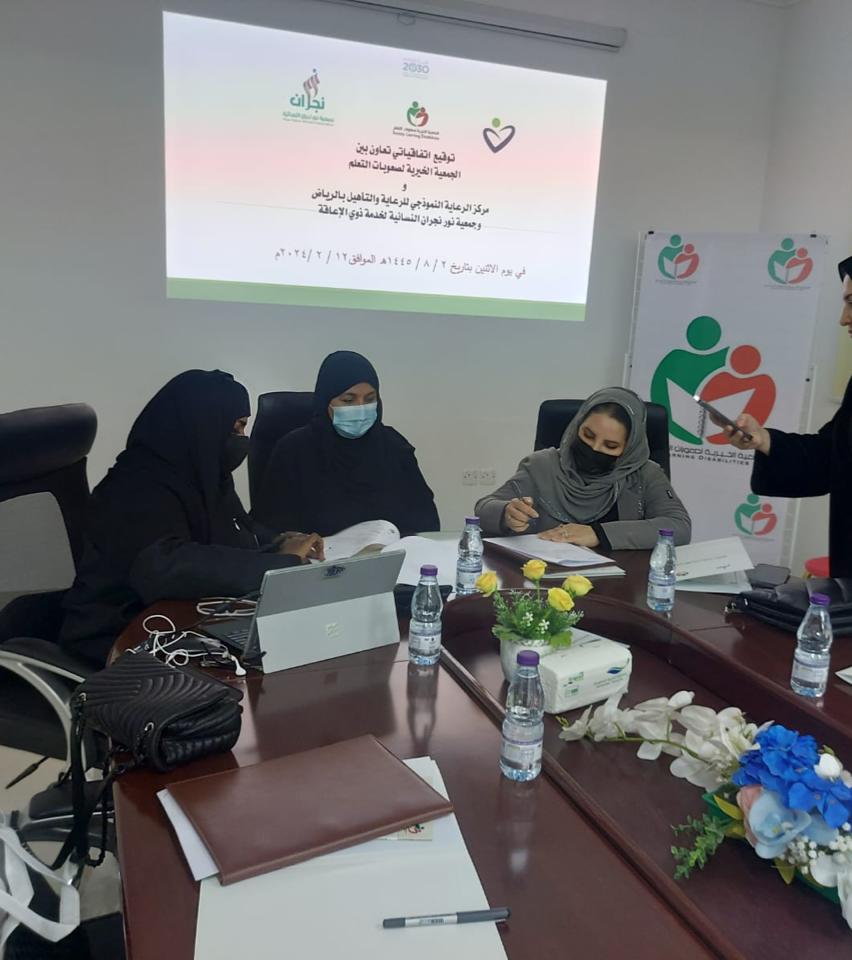 بحضور رئيس مجلس الإدارة الدكتور عثمان بن عبدالعزيز آل عثمان والدكتورة نورة الكثيري نائب رئيس مجلس الإدارة والأمين العام للجمعية الأستاذ عبدالعزيز الجريد ، وقد مثلت الجمعية بالتوقيع الأستاذة فردوس أبو القاسم المدير التنفيذي ، فيما وقعت عن مركز الرعاية النموذجي للتأهيل بالرياض الأستاذة بهيجة حمد الغانم الرئيس التنفيذي، وعن جمعية نور نجران الأستاذة غاده محمد آل مستنير المدير التنفيذي.
