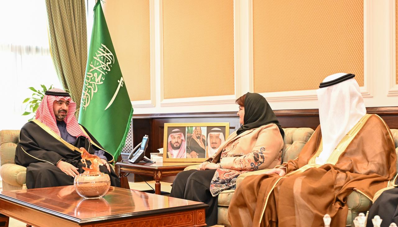 استقبل صاحب السمو الملكي الأمير خالد بن سعود بن عبدالله الفيصل بن عبدالعزيز نائب أمير منطقة تبوك، في مكتبه بالإمارة اليوم , وفدا من منظمة الصحة العالمية , تتقدمهم الدكتورة سمر الفقي خبير منظمة الصحة العالمية في إقليم الشرق الأوسط والدكتور محمد نصر خاشقجي المشرف العام على برنامج المدن الصحية بوزارة الصحة والذي يزور المنطقة حالياً, لتقييم مدينة تبوك بهدف اعتمادها كمدينة صحية .