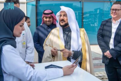وقد استمع معاليه خلال التدشين لشرح من رئيس مجلس إدارة جمعية مكافحة أمراض القلب “نبضات” خالد الحبيب عن ما تتضمنه الفعالية، التي تشارك فيها العربة المتنقلة المزودة بأحدث الأدوات والأجهزة الطبية المتطورة للفحص الشامل للأفراد، وكذلك عرض أجهزة تخطيط القلب الحديثة التي تعرض لأول مرة في المملكة، إضافة إلى منظومة من القنوات التثقيفية والتوعوية المتمثلة في أجنحة متخصصة يتم من خلالها التثقيف والإرشاد حول الأنماط الصحية للحفاظ على قلب سليم وتجنب الأمراض، وإقامة عدد من المناشط الطبية والمجتمعية والمتمثلة في فحص العلامات الحيوية وتحاليل السكر والكوليسترول للموظفين وتزويدهم بالنتائج الفورية، وتخصيص أقسام معنية بعرض آخر ما توصلت له العلوم حول القلب وما يتصل فيه من أمراض وسبل وقاية، كما تضم العربة متحدثين من الممارسين الصحيين للإجابة على استفسارات الموظفين والموظفات، بالإضافة إلى توزيع عدد من الكتيبات والقصاصات المعنية بالقلب.