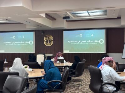 ملتقى الإرشاد المهني وعلى مدار يومين بالتعاون مع عدة جهات على رأسهم صندوق تنمية الموارد البشرية “هدف” وحيث قدم الصندوق جلسات استشارية حوارية بواسطة مرشدين مهنيين لإرشاد الطلاب في مشوارهم المهني وحيثُ أُقيمت العديد من ورش العمل عن ” كتابة السيرة الذاتية، واجتياز المقابلات الشخصية، وأهمية الشهادات الاحترافية، والمهارات الناعمة، واستراتيجيات البحث عن عمل، وتحديد الأهداف”. كما يهدف الملتقى تهيئة طلبة الجامعة وعلى وجه الخصوص الخريجين لمواكبة تطورات سوق العمل ،كما كرمت جامعة طيبة الجهات المشاركة في الملتقى .