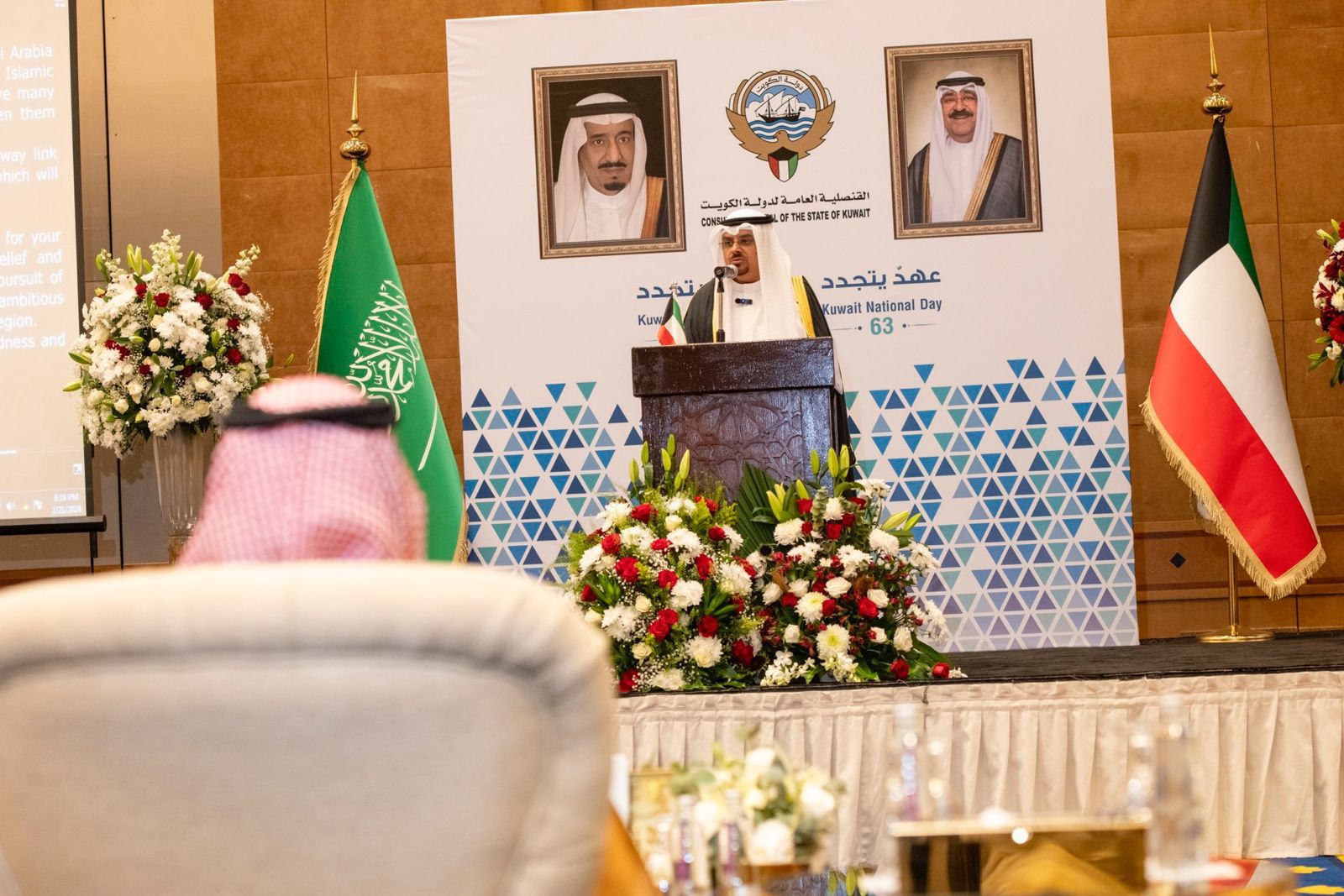 احتفلت القنصلية العامة لدولة الكويت في جدة بالذكرى الـ 63 للعيد الوطني والذكرى الـ 33 ليوم التحرير من العدوان العراقي الغاشم، حيث شرّف الحفل سمو الأمير سعود بن عبدالله بن جلوي، محافظ جدة، وعدد من اصحاب السمو الأمراء وأصحاب المعالي ومنسوبي الأمانة العامة لمنظمة التعاون الاسلامي بجدة، وأعضاء السلك الدبلوماسي والقناصل العامين والقناصل الفخريين المعتمدين في مدينة (جدة) ورجال الأعمال والإعلاميين والطلبة الكويتيين الدارسين المبتعثين بالجامعات في المنطقة الغربية.
