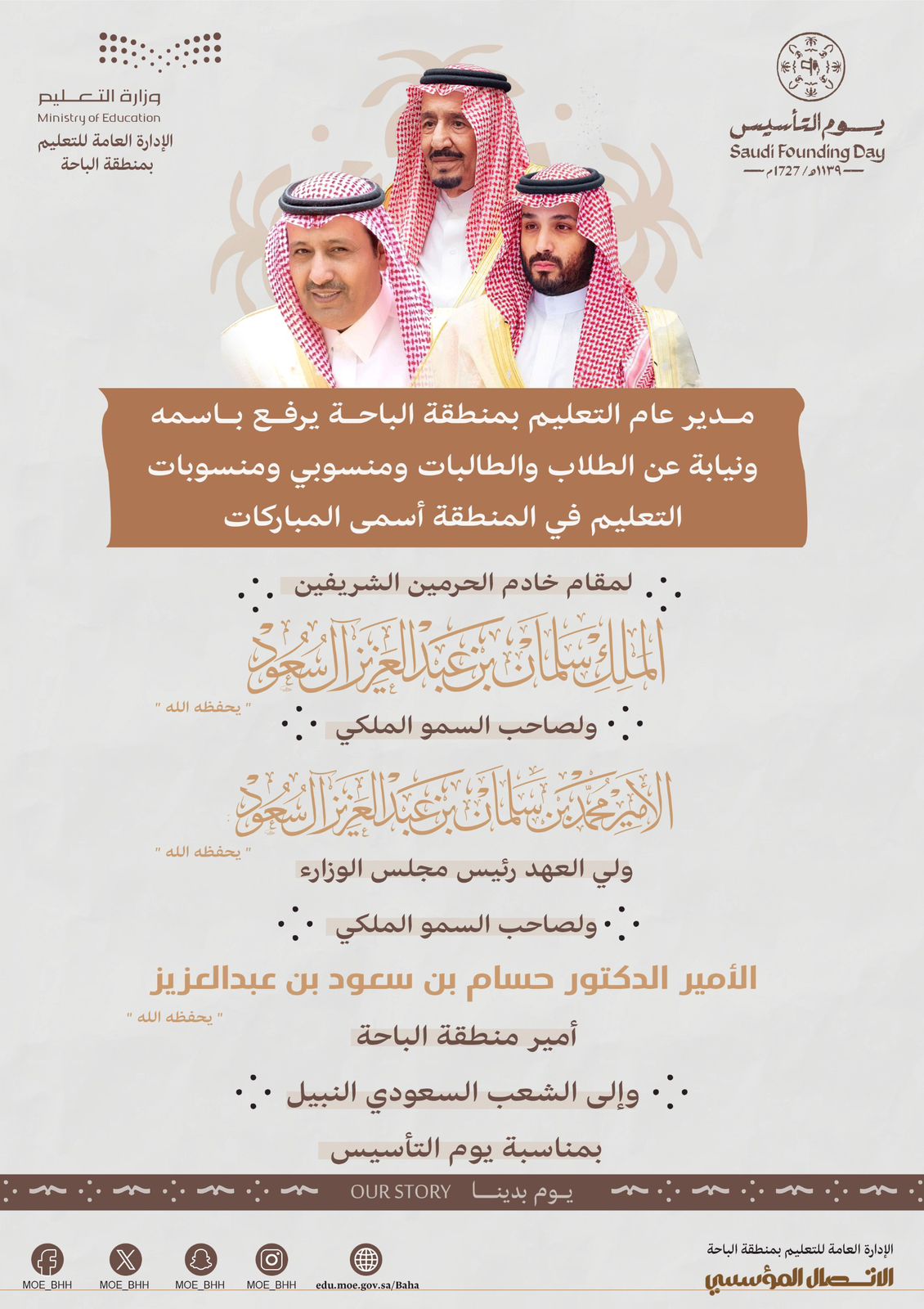 بمناسبة يوم التأسيس وباسم أسرة التعليم في المنطقة الباحه،