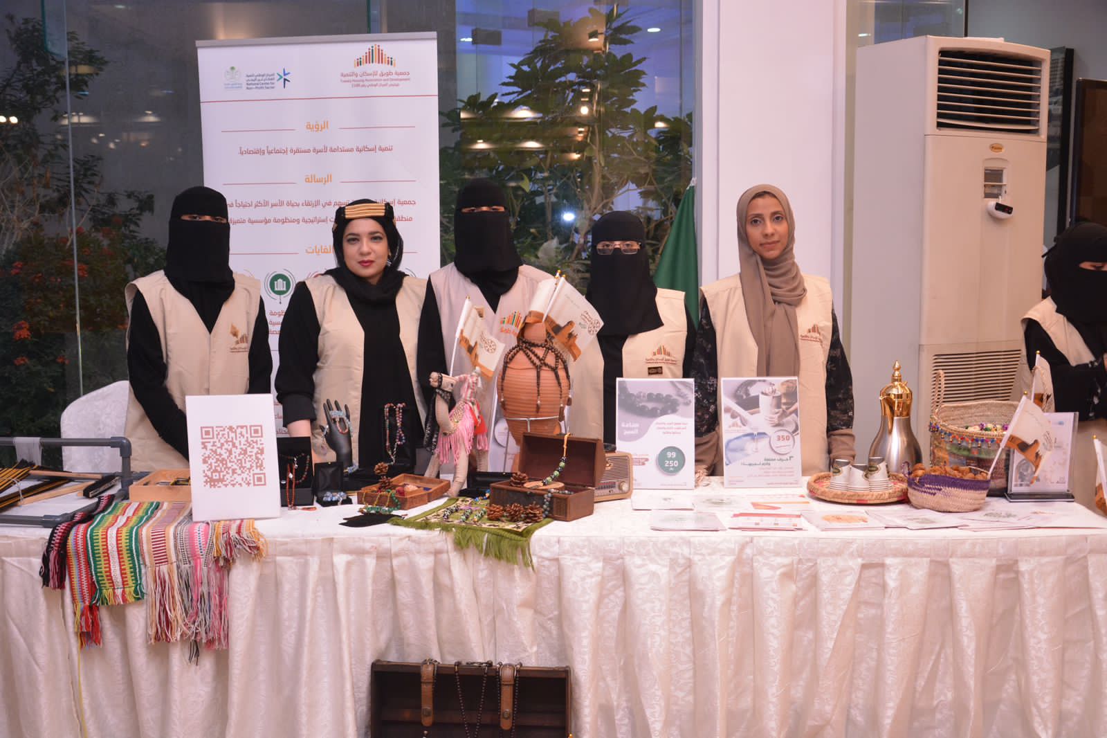 حيث عرض قسم التنمية مجموعة مختارة من الدورات التي تقدمها الجمعية مثل في الجمعية انتاج الخزف وتم عرض عدد من القطع المزخرفة ثم تم عرض حي للصناعه و مشاركة عدد من الزوار في التجربة وعرضت عدد من مستفيدات الجمعية مجموعة من منتجات صناعة السدو والسبح التي تم انتاجها بعد تلقيهم دورات احترافية الى ايدي مدربات محترفات تحت مظلة الجمعية