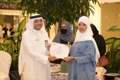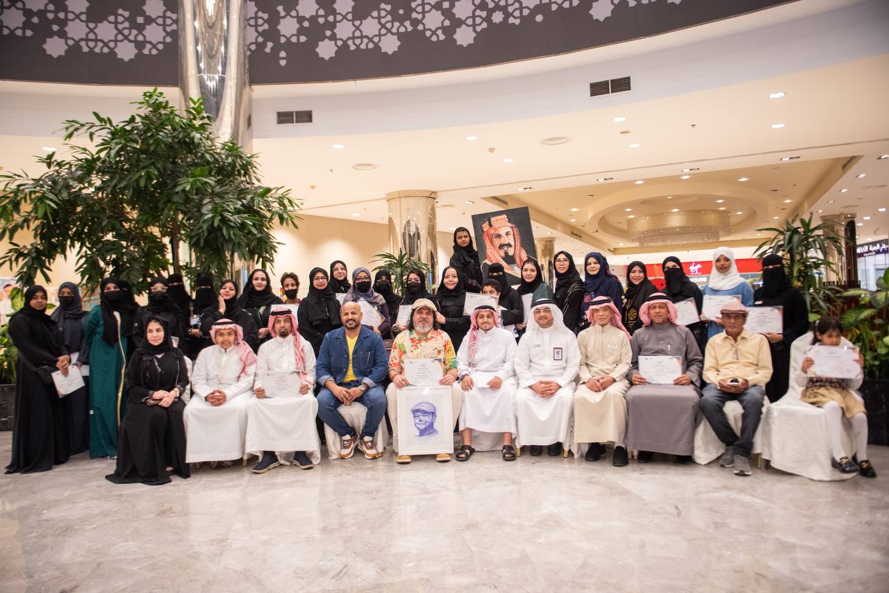 “يوم التأسيس” وكذلك المشاركين في ورش الرسم المباشر أمام الجمهور، وذلك في مقر الجمعية بروشانا مول.