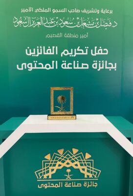 على جائزة إمارة منطقة القصيم ( جائزة صناعة المحتوى ) برعاية وتشريف سمو أمير منطقة القصيم الأمير الدكتور فيصل بن مشعل ، وذلك لتميزه بين حسابات الجهات الحكومية في ( نشر الوعي وبث روح الإيجابية بما يخدم الوطن والمواطن )