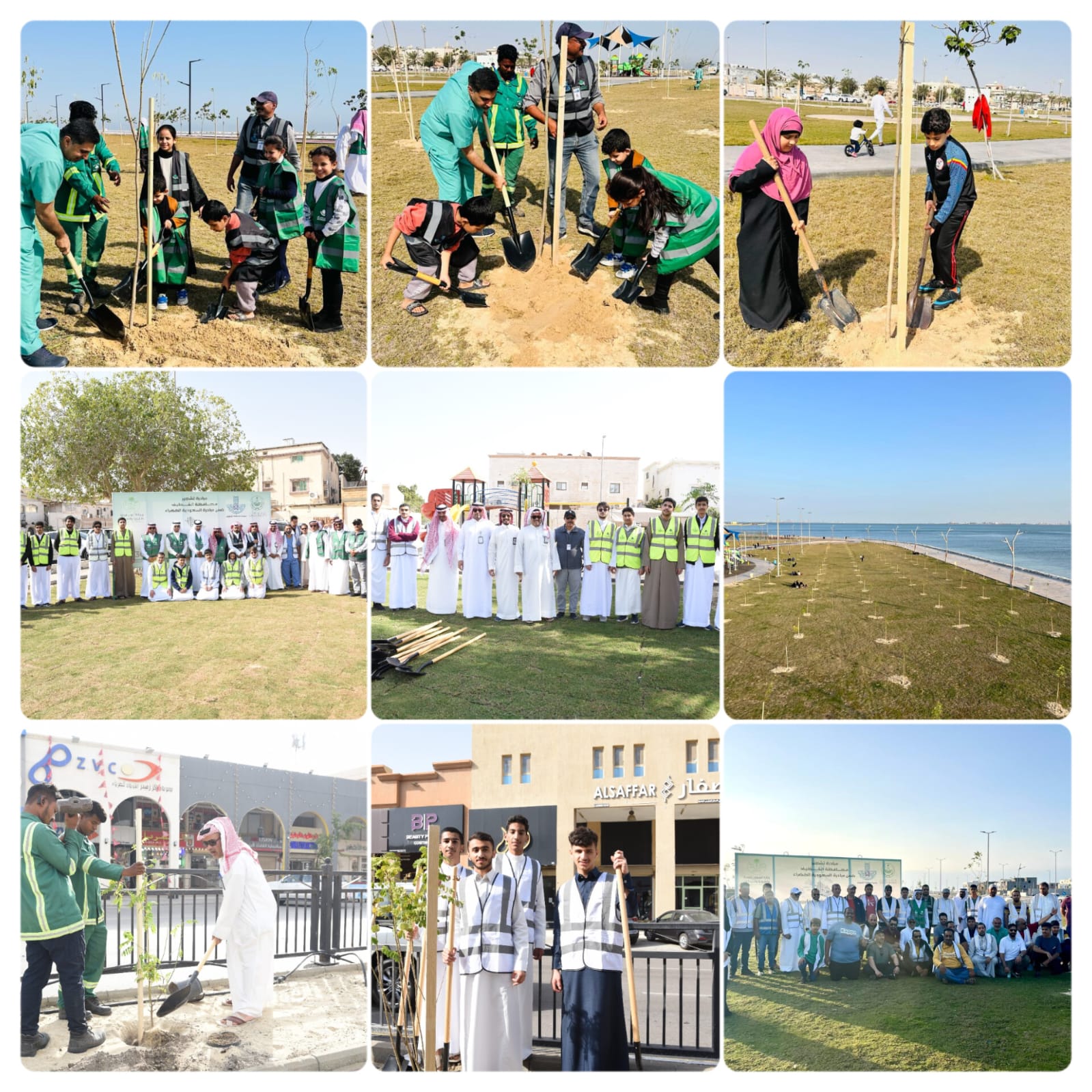(أنهت بلدية محافظة القطيف، بالتعاون مع الجهات المشاركة، ممثلة في شركة أرامكو السعودية، ومكتب وزارة البيئة والمياه والزراعة، ومركز التنمية الاجتماعية، أعمال المرحلة الأولى من مبادرة تشجير مدن وبلدات القطيف، تحت شعار: “مساحة خضراء”