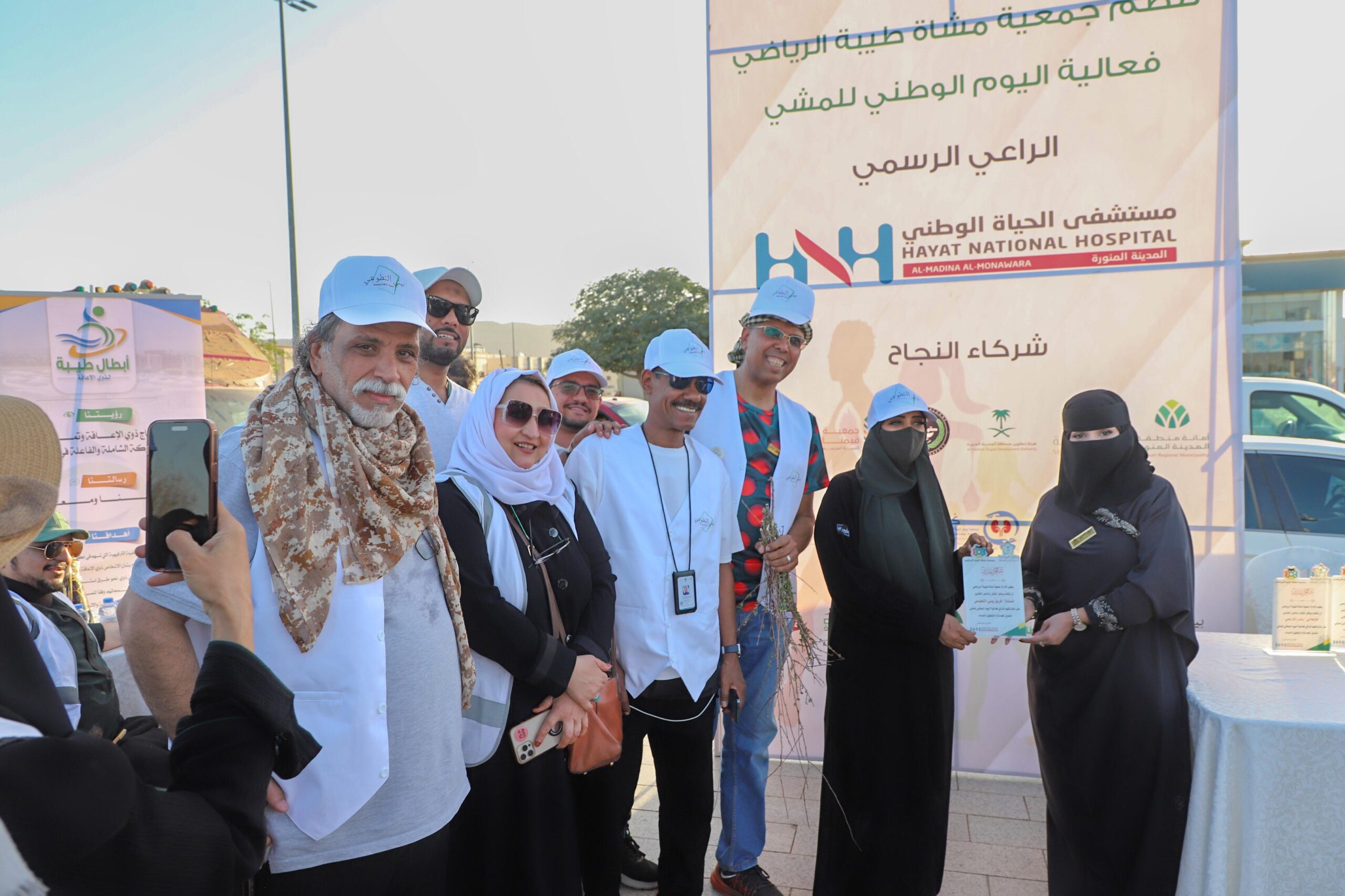 من منطلق الإحتفاء وتفعيل”اليوم الوطني للمشي ” شارك فريق بيئي التطوعي المسجل بجمعية مراكز الأحياء “مجتمعي” بالمدينة المنورة؛ في إحتفال اليوم الوطني للمشي الذي نظمته إدارة جمعية مشاة طيبة الرياضي ” بالتعاون مع فرع وزارة الرياضة بالمدينة ومع أمانة منطقة المدينة المنورة وبرعاية من مستشفى الحياة الوطني .