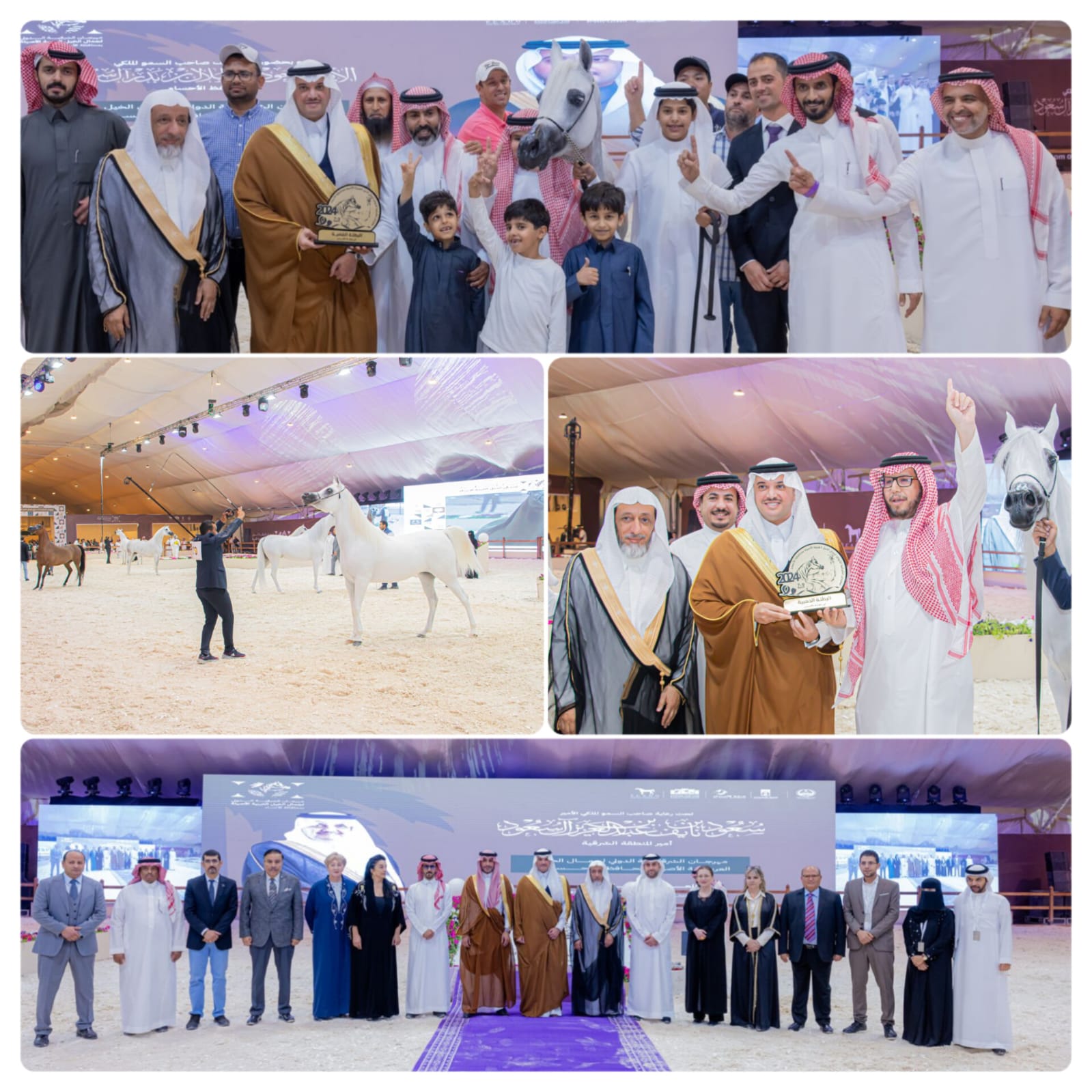 برعاية صاحب السمو الملكي الأمير سعود بن نايف بن عبدالعزيز، أمير المنطقة الشرقية، توج صاحب السمو الملكي الأمير سعود بن طلال بن بدر محافظ الأحساء ، امس” السبت ” الفائزين في مهرجان الشرقية الدولي لجمال الخيل العربية الأصيلة والذي أقيم على أرض قلعة أمانة الأحساء، وبإشراف مركز الملك عبدالعزيز للخيل العربية الأصيلة بشراكة مع محافظة الأحساء وأمانة الأحساء، والغرفة وبمشاركة 207 جوادًا يمثلون عدد من دول العالم، تنافسوا خلاله الجياد على ألقاب المهرجان العالمي الذي يحمل تصنيف عالي لبطولات جمال الخيل العربية، وفق الأنظمة الدولية المعمول بها في المنظمة العالمية الإيكاهو، وهي المنظمة المعنية ببطولات جمال الخيل العربية الأصيلة.
