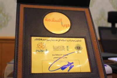 دشن محافظ ينبع سعد بن مرزوق السحيمي بمكتبه بالمحافظة مبادرة ” درب السلامة ” إحدى مبادرات ومشاريع مؤسسة الديوانية للعمل التطوعي الوقفية بمحافظة ينبع للتوعية بأهمية الالتزام بإرشادات السلامة في شهر رمضان المبارك ، حيث تأتي هذه المبادرة بالشراكة مع وزارة النقل والخدمات اللوجستية وبالتعاون مع شعبة مرور ينبع ورعاية عدد من الشركات بينبع.