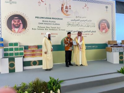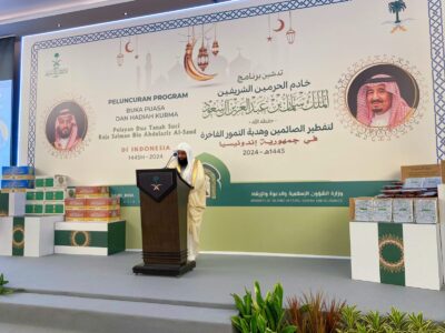 من جهته، أوضح الملحق الديني بسفارة المملكة لدى إندونيسيا الشيخ أحمد بن عيسى الحازمي، أن تدشين هذه البرامج يأتي ضمن مكرمة خادم الحرمين الشريفين في عدد من دول العالم خلال شهر رمضان المبارك، مبينًا أنه تم تخصيص هذا العام لبرنامج التمور (20) طنًّا، ويبلغ عدد المستفيدين من برامج التفطير قرابة (40) ألف صائم في إندونيسيا.