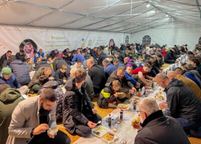 أقامت وزارة الشؤون الإسلامية والدعوة والإرشاد، ممثلةً بالملحقية الدينية في سفارة خادم الحرمين الشريفين في البوسنة والهرسك، مأدبة إفطار للصائمين في مسجد الملك فهد الذي يعد أكبر مسجد في العاصمة البوسنية سراييفو، وأحد أكبر المشروعات الحضارية في منطقة البلقان، وذلك ضمن برنامج هدية خادم الحرمين الشريفين لتفطير الصائمين الذي تنفذه الوزارة، وقد استفاد من المأدبة قرابة (1000) صائم من الرجال والنساء، في إطار الجهود التي تقدمها الوزارة لخدمة المسلمين بالعالم.