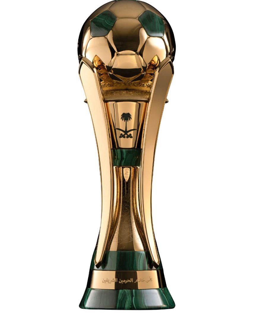 ويعتلي الكأس كرة قدم مطلية بالذهب الخالص ومادة الملكيت، وتنحدر منها 4 مقابض مميزة، وفي المنتصف يوجد شعار السيفين والنخلة التي ترمز إلى المملكة العربية السعودية، بالإضافة إلى نقش اسم الكأس يدويًا بشكلٍ دائري.
