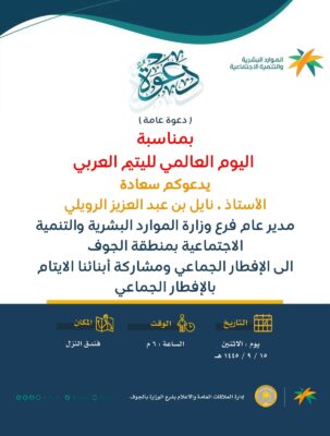 فعّل فرع وزارة الموارد البشرية والتنمية الأجتماعية بمنطقة الجوف ممثلا بإدارة المسؤولية الأجتماعية ، يوم المسؤولية الاجتماعية الذي يوافق 23 مارس من كل عام ، لتتواصل فرص التمكين والمبادرات للقطاع الخاص تجاه البيئة والاقتصاد والمجتمع ، لـتكمل المشهد نحو تنمية وطنية مستدامة نلتزم بمسؤوليتنا الاجتماعية ، وذلك من خلال شاشات أمانة منطقة الجوف والبلديات التابعة لها بالمحافظات وغرفتيّ الجوف و القريات من خلال منصة اكس لنشر الثقافة والاحتفاء بهذا اليوم.