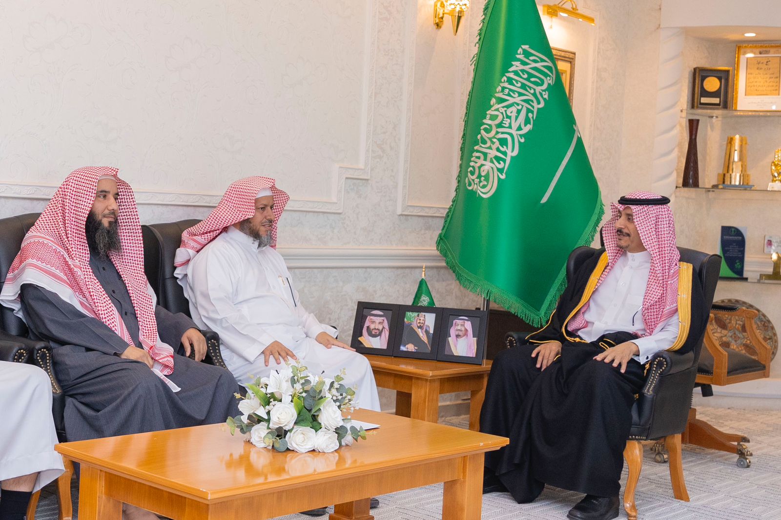 استقبل صاحب السمو الأمير عبد الرحمن بن عبد الله بن فيصل محافظ حفر الباطن في مكتبه، رئيس مجلس إدارة جمعية الدعوة والإرشاد وتوعية الجاليات الدكتور سبتي مصليت العنزي يرافقه الرئيس التنفيذي للجمعية وعدد من المسلمين الجدد بعد إعلان إسلامهم