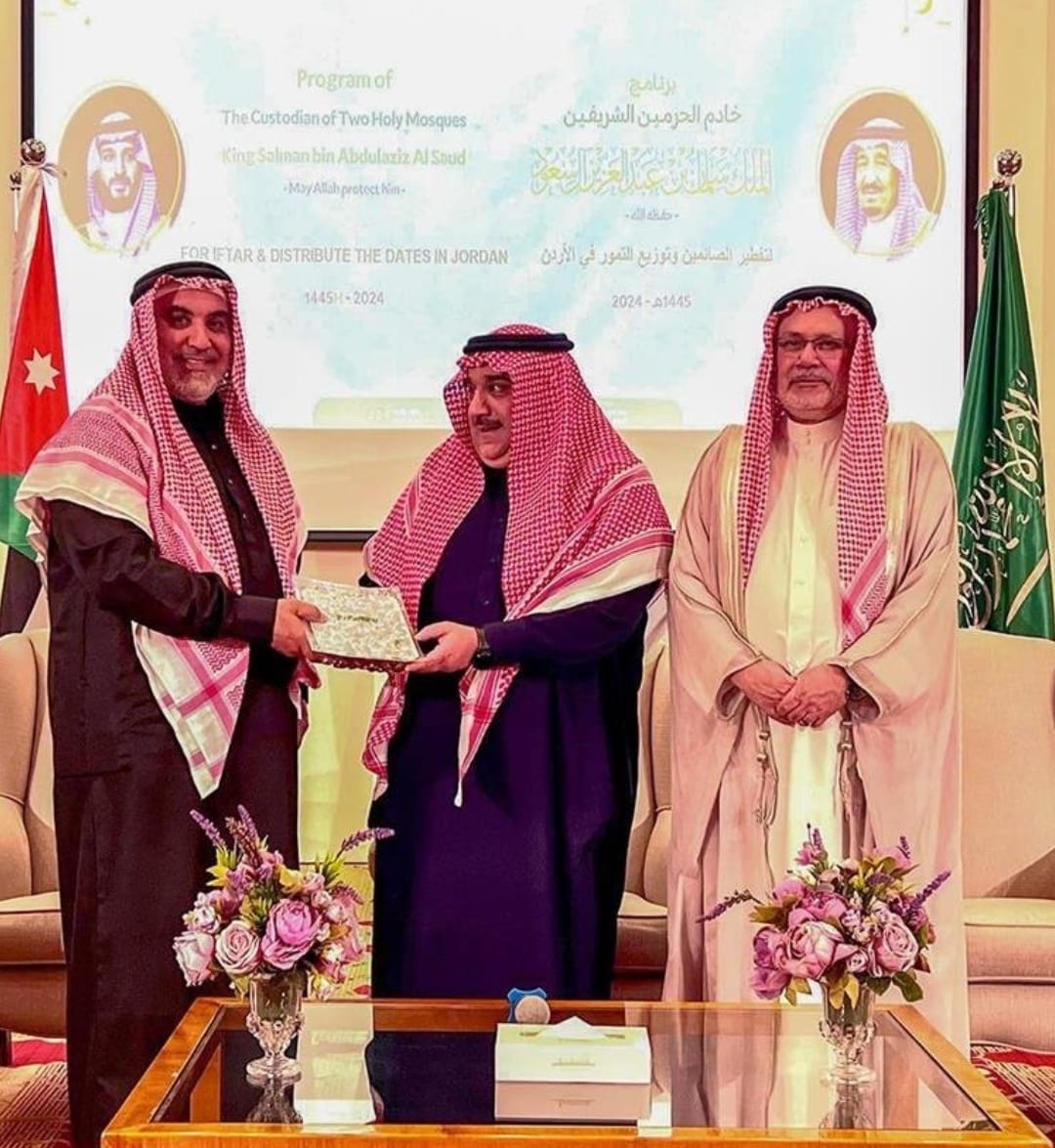 دشنت وزارة الشؤون الإسلامية والدعوة والإرشاد، أمس، برنامجي هدية خادم الحرمين الشريفين من التمور وتفطير الصائمين بمناسبة شهر رمضان المبارك 1445هـ، في العاصمة الأردنية عمّان، بحضور نائب السفير السعودي وليد خان، ووزير الأوقاف السابق معالي الدكتور هايل عبدالحفيظ داود، وعدد من الشخصيات الإسلامية والأكاديميين ورؤساء الأقسام بعدة جامعات أردنية.